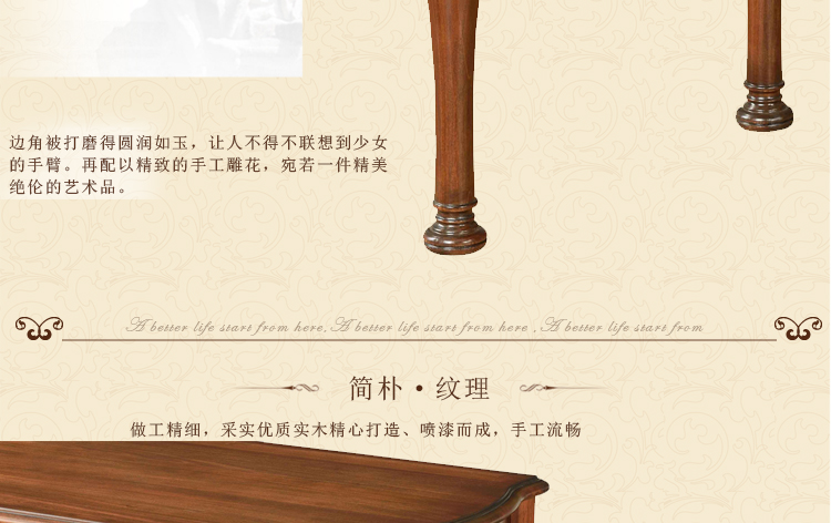 美式古老工艺技法,精雕细琢,完美极致。传达出美式风格的实木家具。木板采用的都是100%实木,防潮防腐防蛀超环保。木艺家具浑厚沉实、明朗高尚的独特韵味及风格。让您的家独具一格!