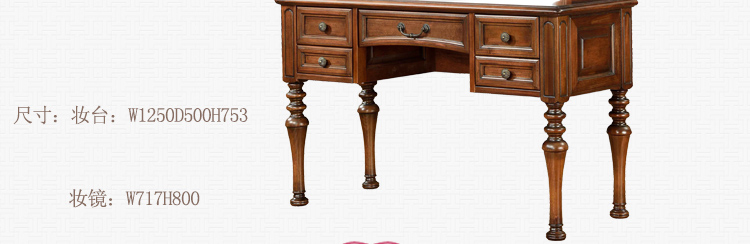 尺寸:妆台:W1250D500H753mm ; 妆镜:W717H800mm