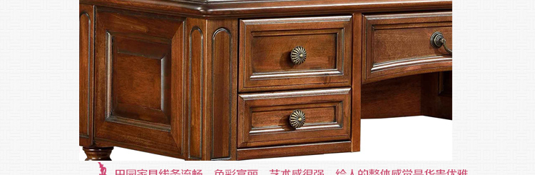 美式古老工艺技法,精雕细琢,完美极致。传达出美式风格的实木家具。木板采用的都是100%实木,防潮防腐防蛀超环保。木艺家具浑厚沉实、明朗高尚的独特韵味及风格。让您的家独具一格!