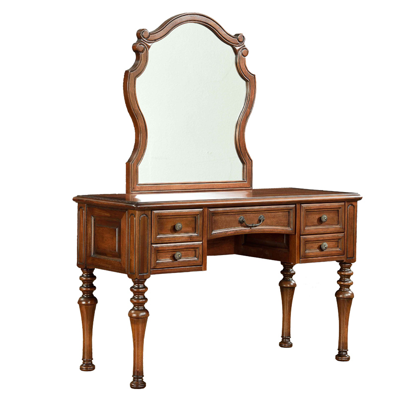 曲富美式全实木梳妆台复古化妆桌简美田园小收纳桌小美乡村妆台小户型M5403