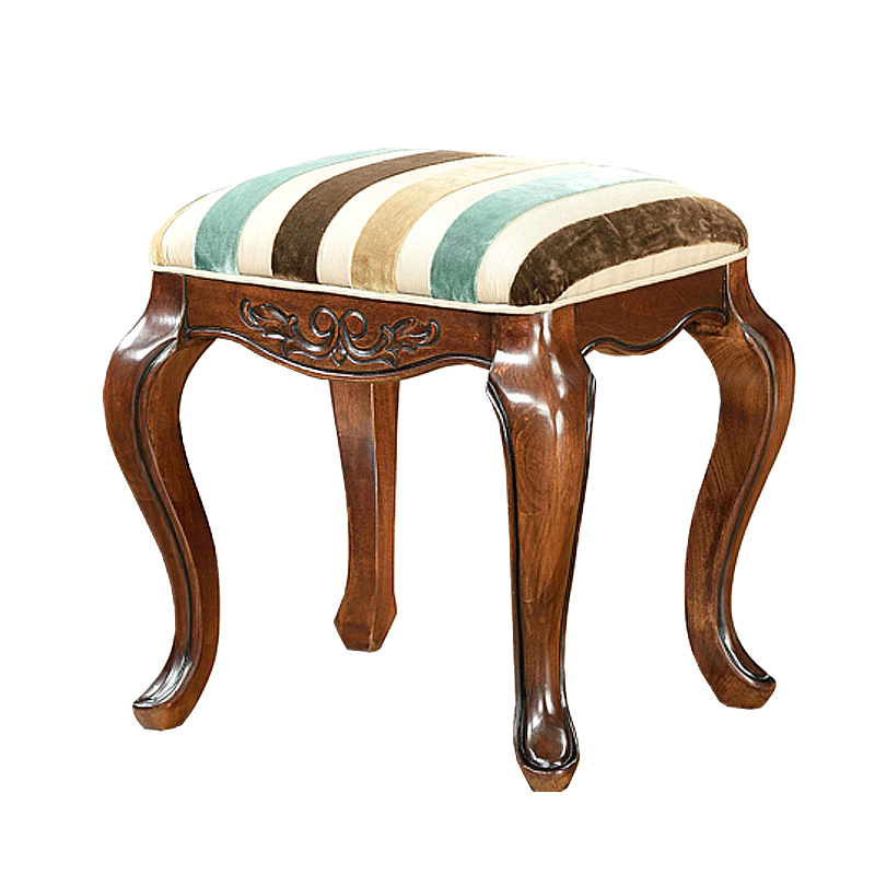 曲富美式乡村软包梳妆凳实木化妆凳换鞋凳卧室复古凳子M5502