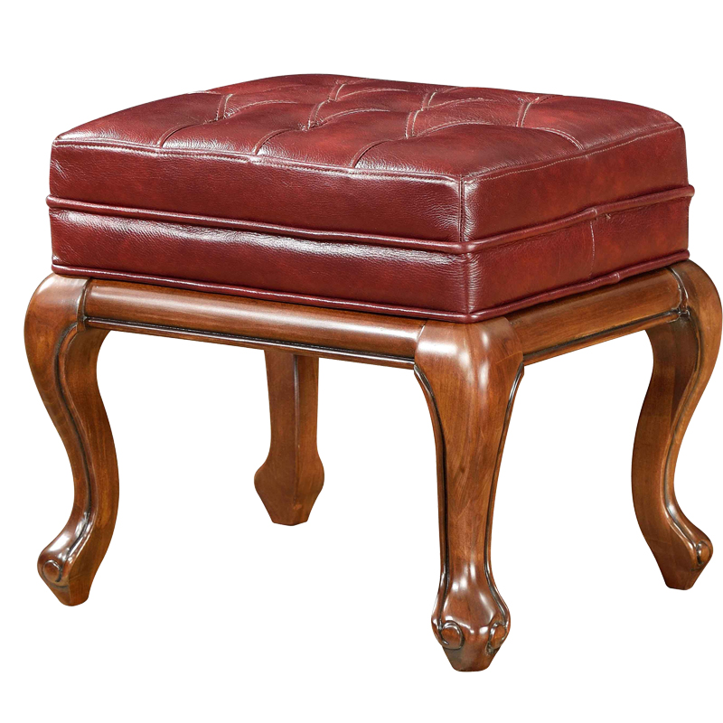 曲富美式实木真皮梳妆凳真皮换鞋凳矮凳小凳子真皮妆凳特价M5503