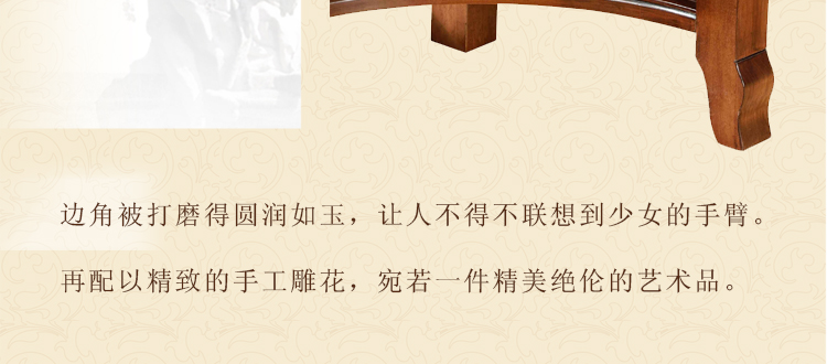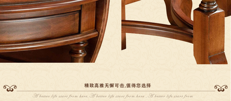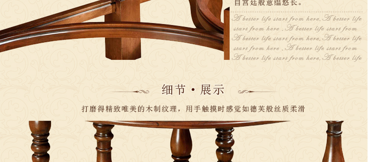 美式古老工艺技法,精雕细琢,完美极致。传达出美式风格的实木家具。木板采用的都是100%实木,防潮防腐防蛀超环保。木艺家具浑厚沉实、明朗高尚的独特韵味及风格。让您的家独具一格!