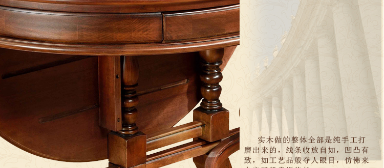 曲富美式餐桌实木美式多功能圆桌椅组合4人可折叠吃饭桌子乡村餐台M6307