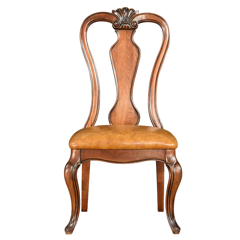 曲富美式乡村复古做旧实木餐椅美式休闲靠背无扶手椅子餐椅M6403