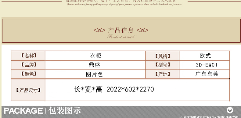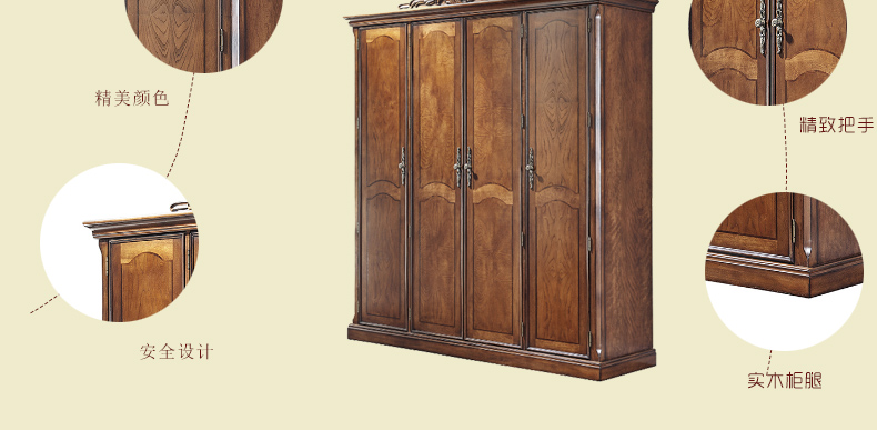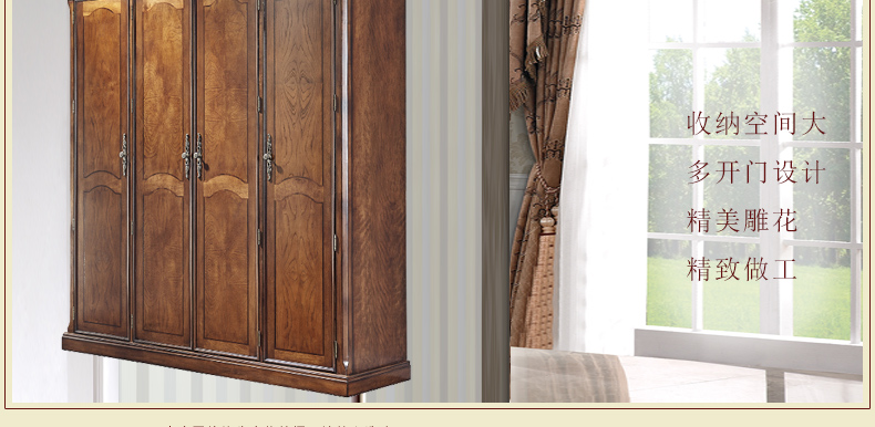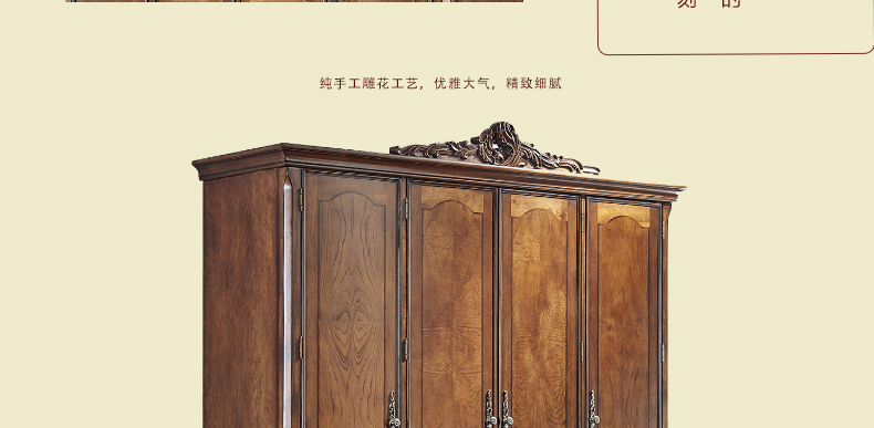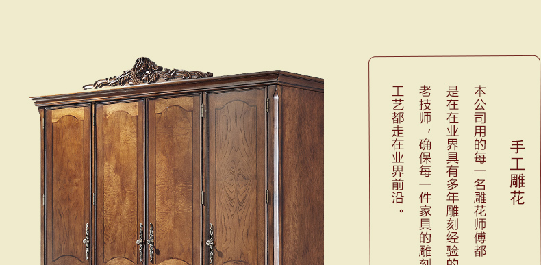 新款衣柜卧室四门大衣柜欧式雕花衣柜实木衣柜鼎盛3D-EW01