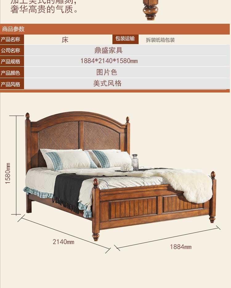 鼎盛美式家具美式双人床实木床美式乡村床3D-AB04