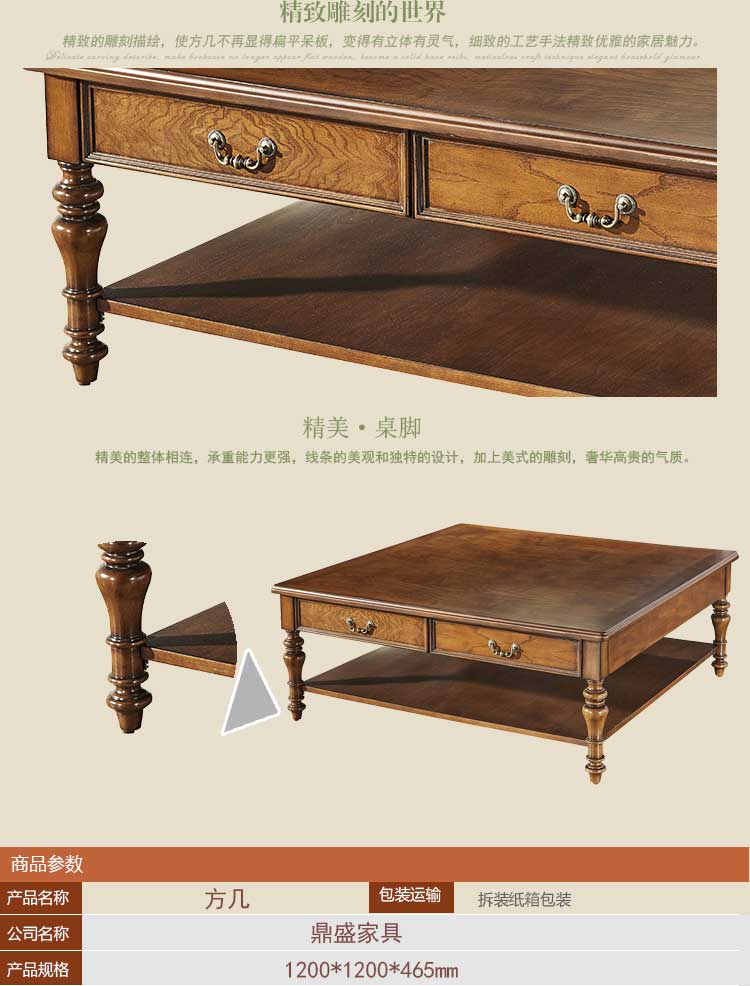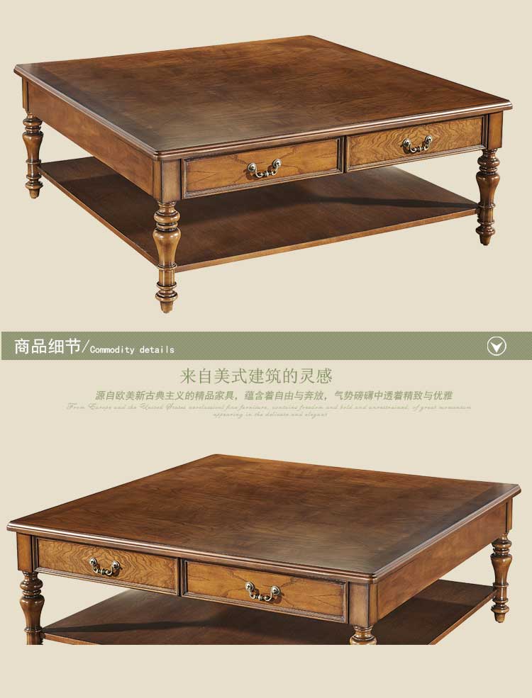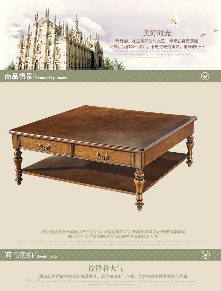 美式新古典茶几/实木雕刻咖啡桌茶水桌 鼎盛3D-ACT01A