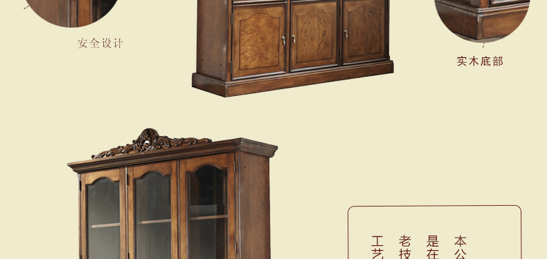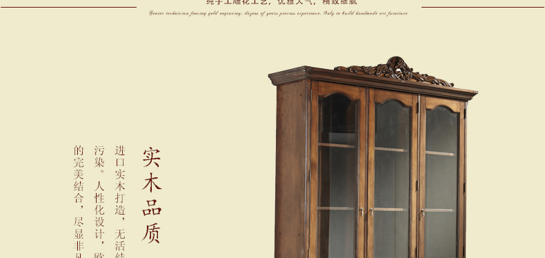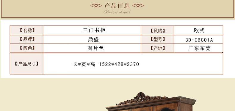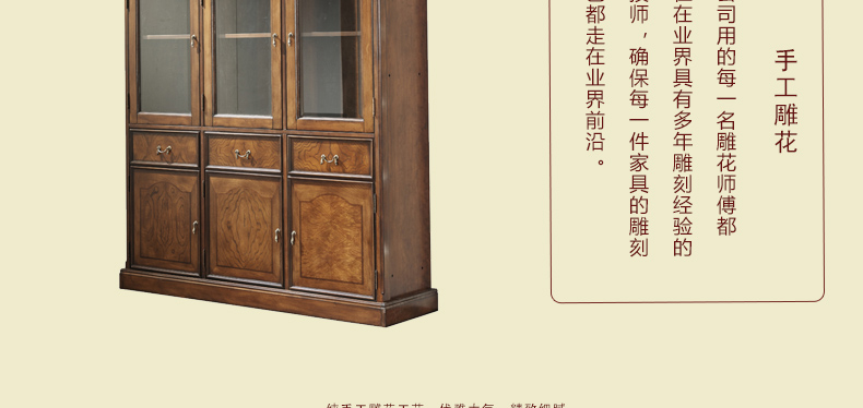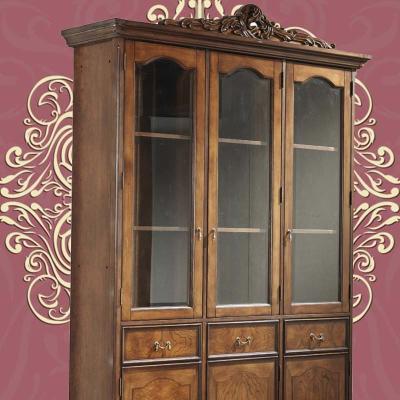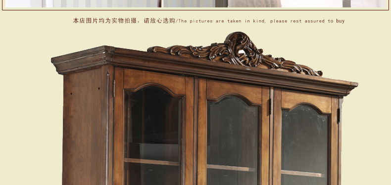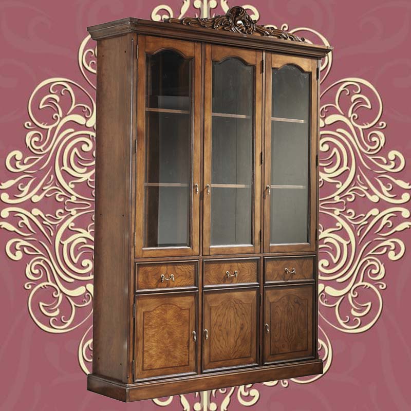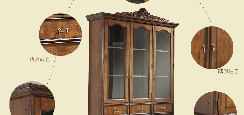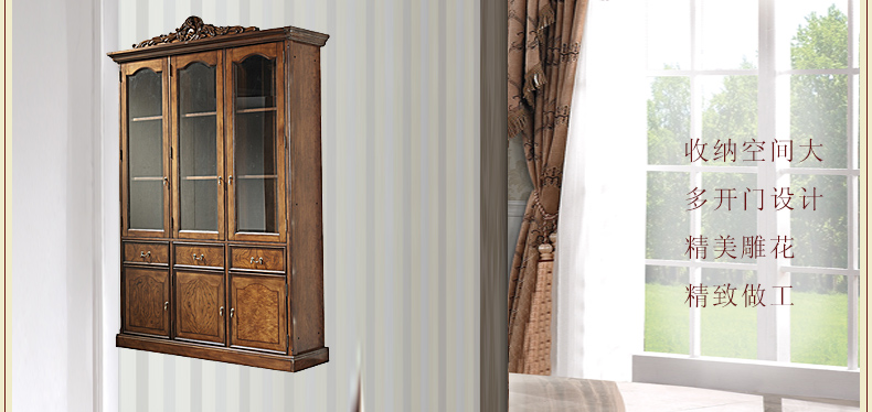 厂家直销实木书柜 特价三门置物架欧式书柜玻璃门书柜鼎盛3D-EBC01A