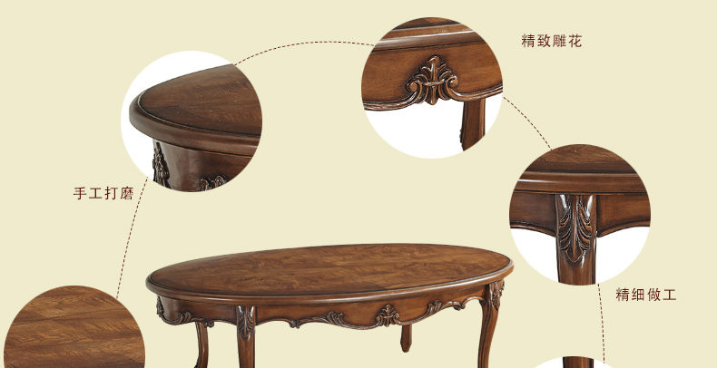 欧式新款椭圆茶几木质茶几实木雕花茶几厂家直销鼎盛3D-ECT03
