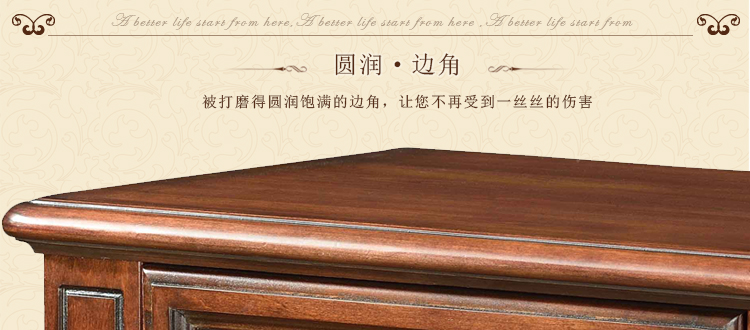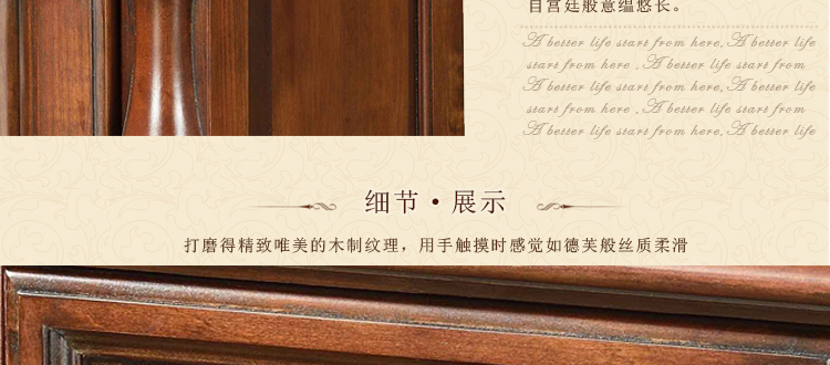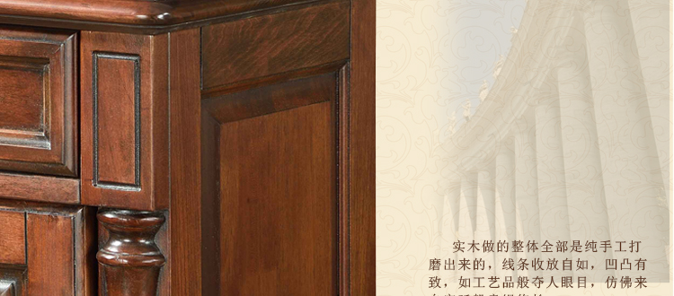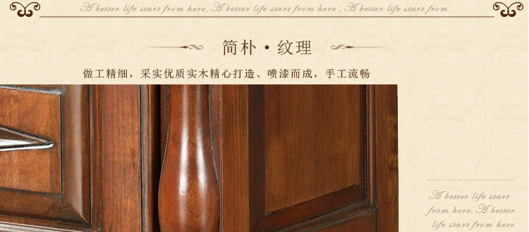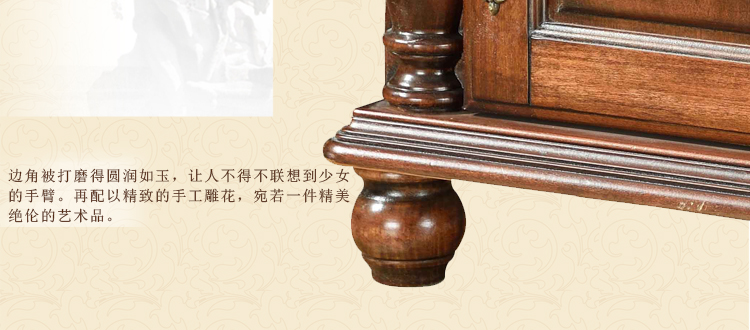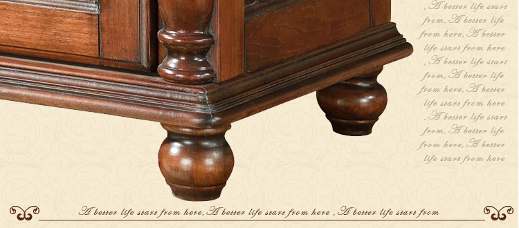 美式古老工艺技法,精雕细琢,完美极致。传达出美式风格的实木家具。木板采用的都是100%实木,防潮防腐防蛀超环保。木艺家具浑厚沉实、明朗高尚的独特韵味及风格。让您的家独具一格!