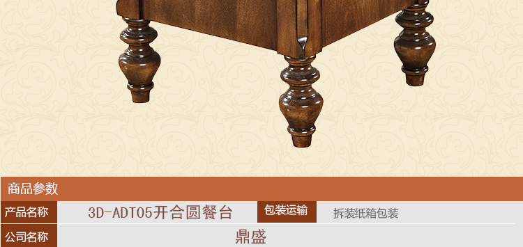 美式乡村餐厅家具 实木圆形餐桌 开合圆餐台圆桌鼎盛3D-ADT05开合圆餐台