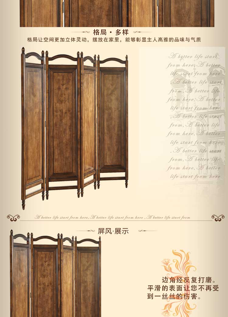 鼎盛 美式乡村仿古实木折叠屏风 复古做旧隔断 3D-AP01