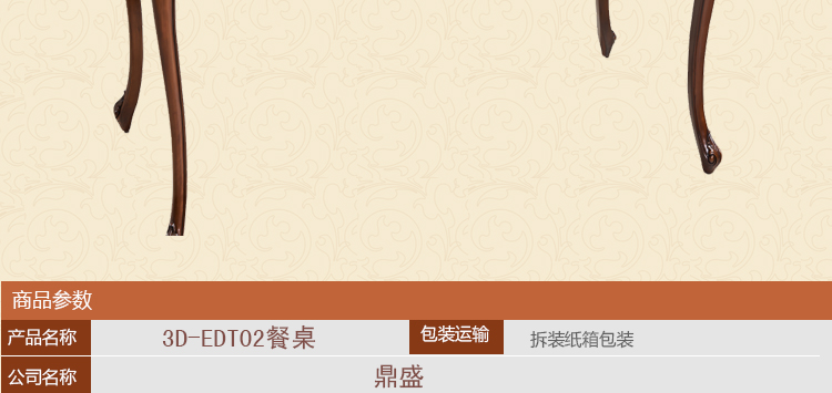 欧式餐桌简欧餐桌台简欧实木深色餐桌饭桌鼎盛3D-EDT02餐桌