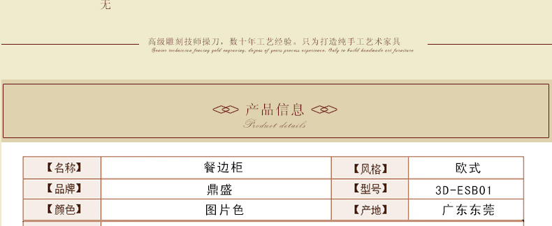 鼎盛厂家直销 特价实木餐边柜欧式储物碗柜 酒柜玄关3D-ESB01