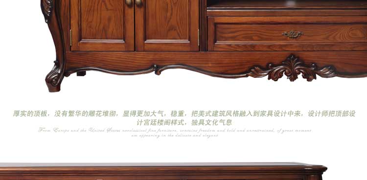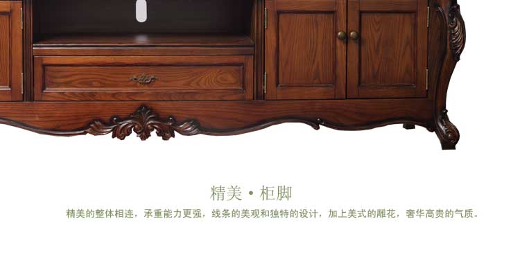 优质材质 多格储物 手工雕刻 复古拉手 实木柜脚