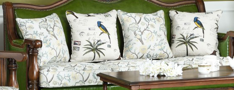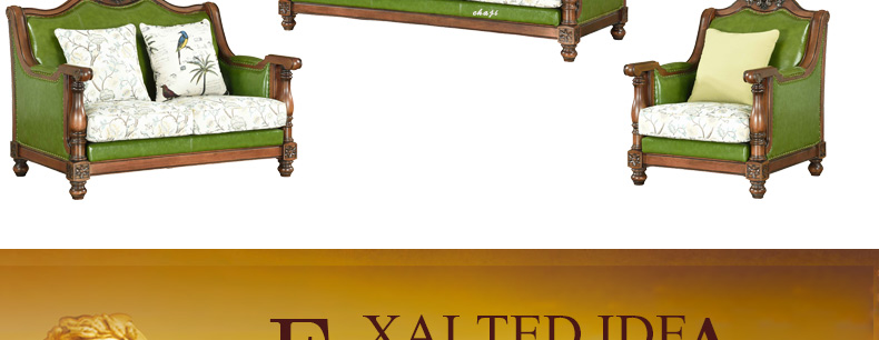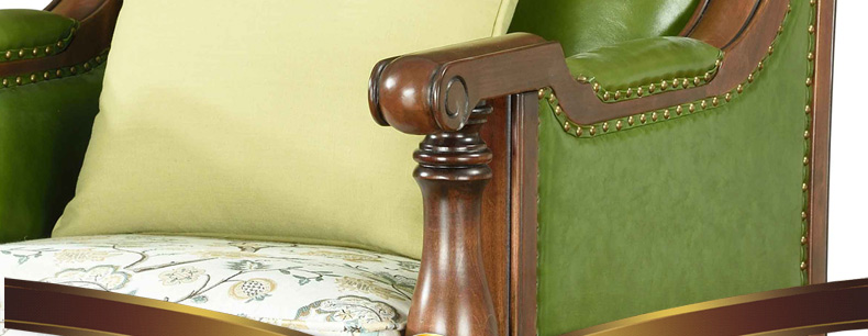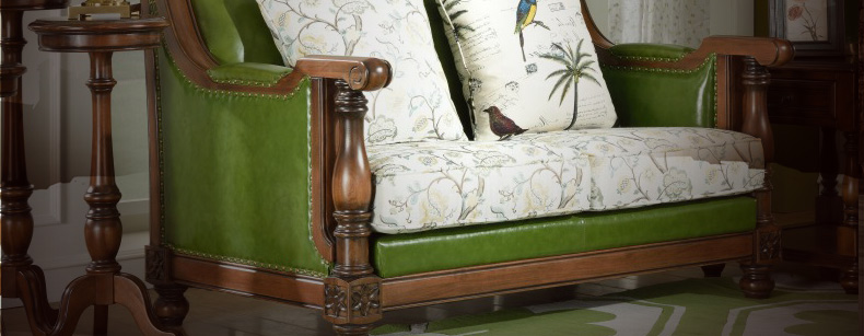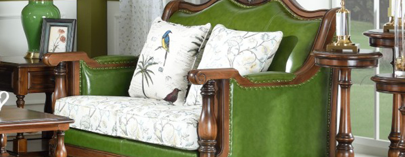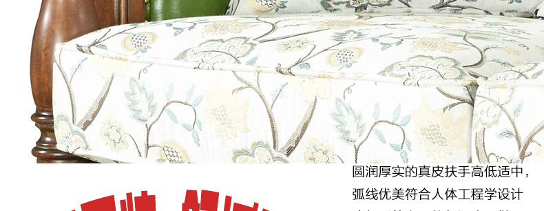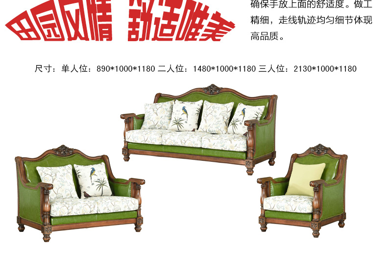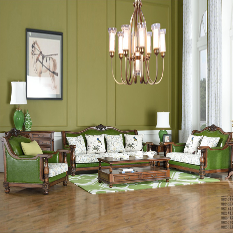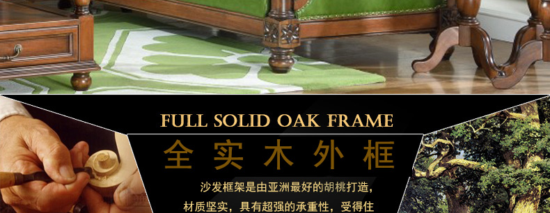 曲富全实木真皮美式艺术沙发大小户型美式乡村皮布结合沙发组合M8101