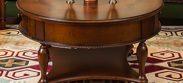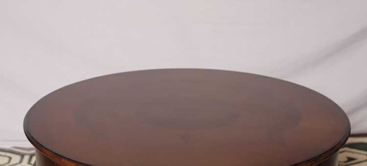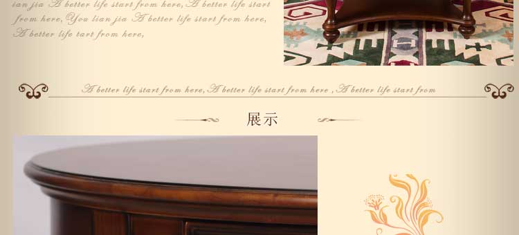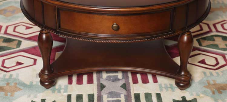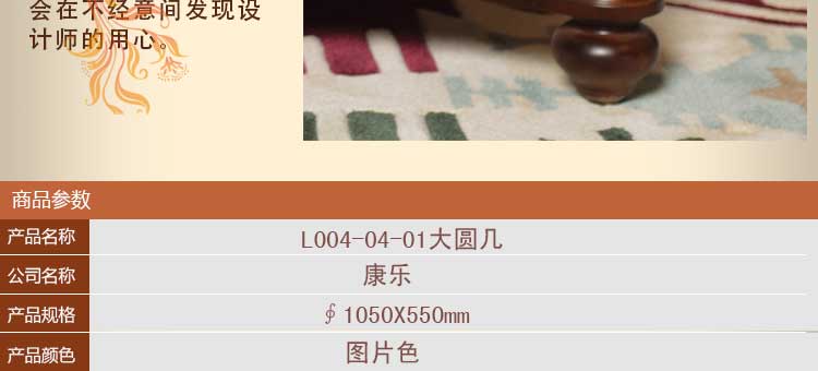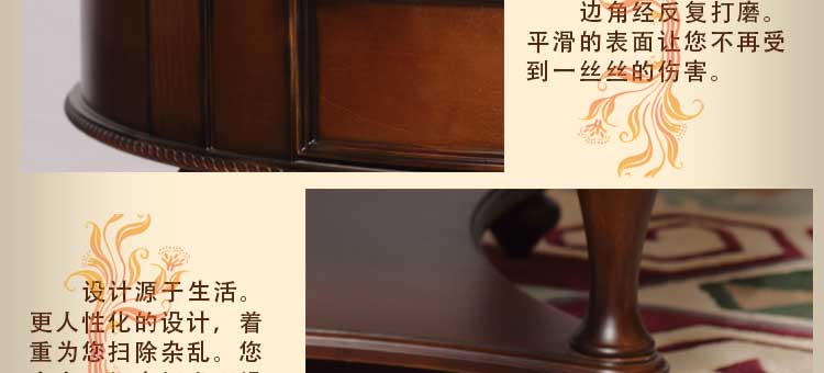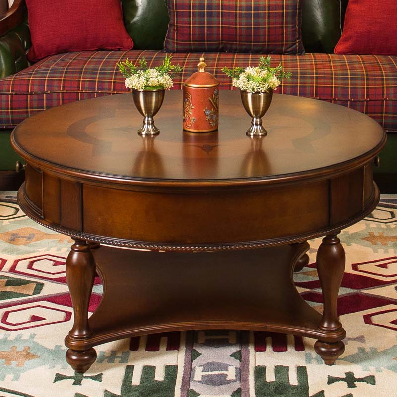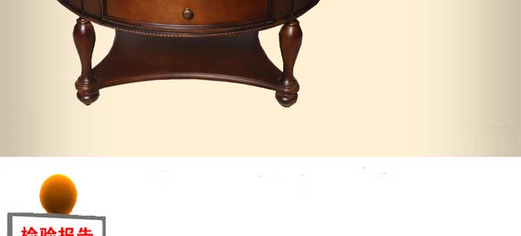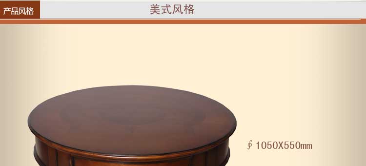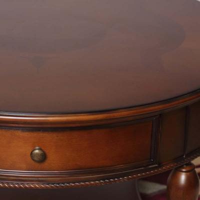 康乐 美式乡村实木茶几圆形咖啡桌带抽屉复古简约小户型客厅家具L004-04-01大圆几