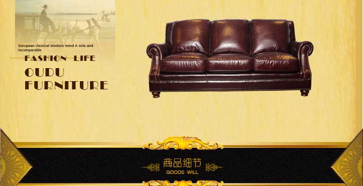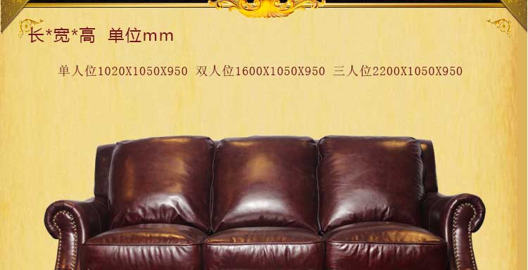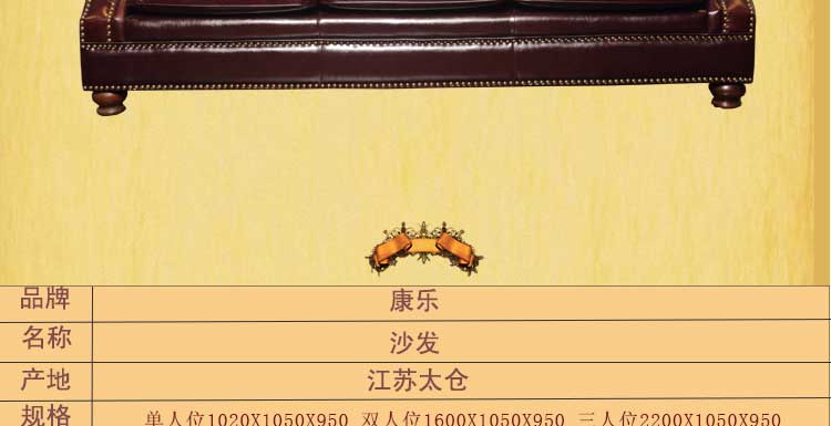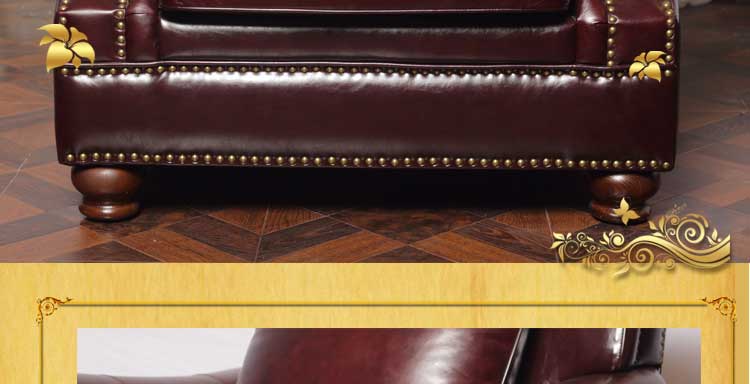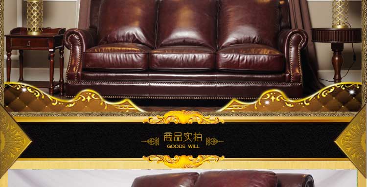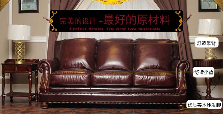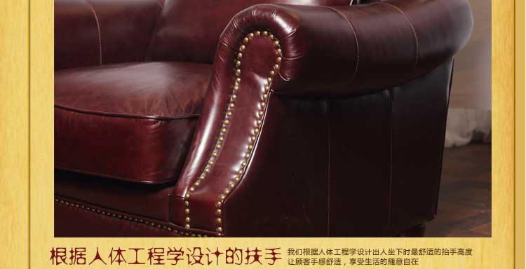 康乐 大户型真皮沙发头层牛皮123组合皮艺沙发复古家具KL9008