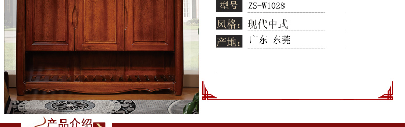 金木旺家中式鞋柜多功能储物门厅柜框架实木玄关柜收纳中式鞋橱ZS-W1028