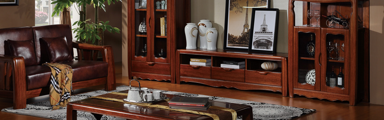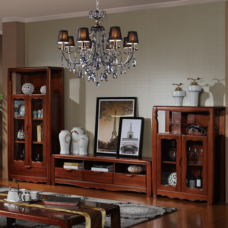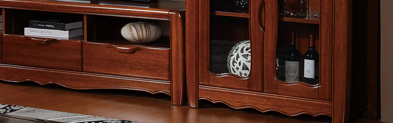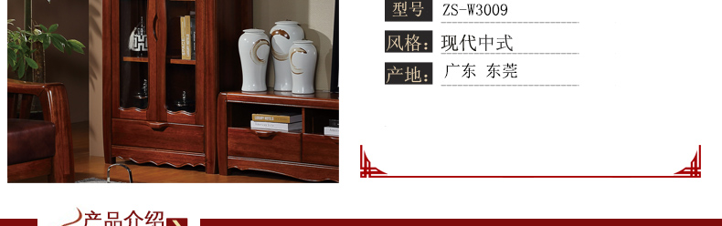 金木旺家实木家具电视柜组合带酒柜客厅柜背景墙地柜高低中式一体柜ZS-W3009
