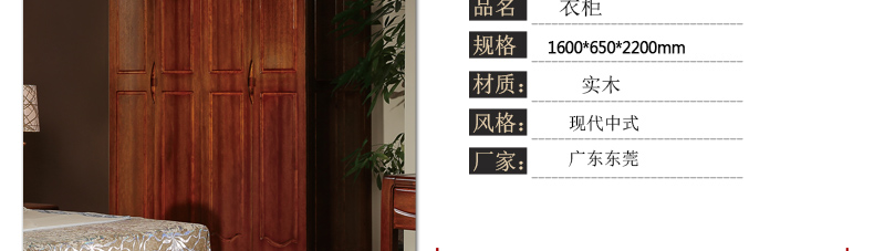 金木旺家中式全实木衣柜四门移门推拉卧室大衣橱组装衣柜ZS-W1206
