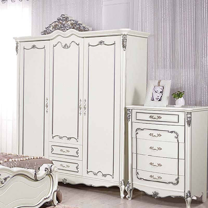 美林印象 欧式雕花三门衣柜四门衣柜环保喷漆自带抽屉衣柜f501