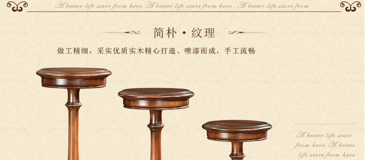 曲富美式实木花架美式简约仿古小花几沙发木边几角几M8603