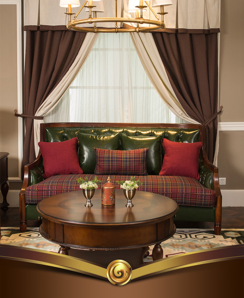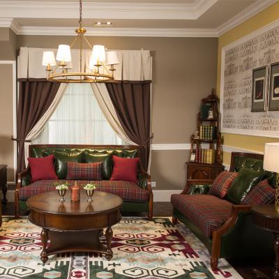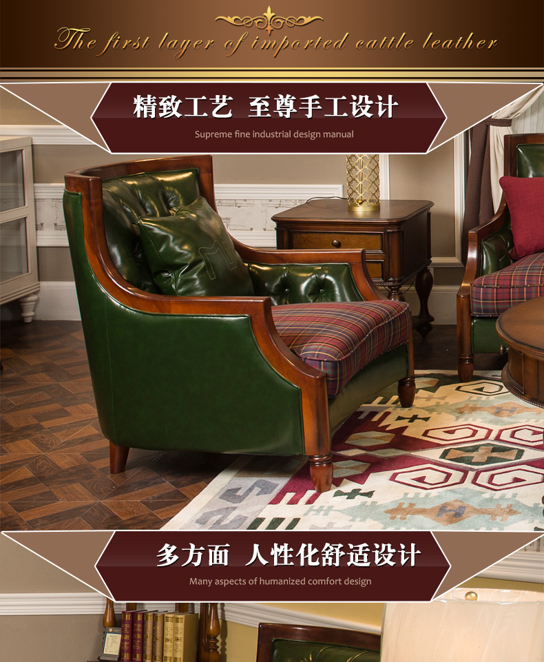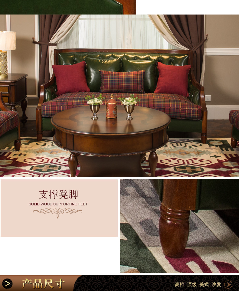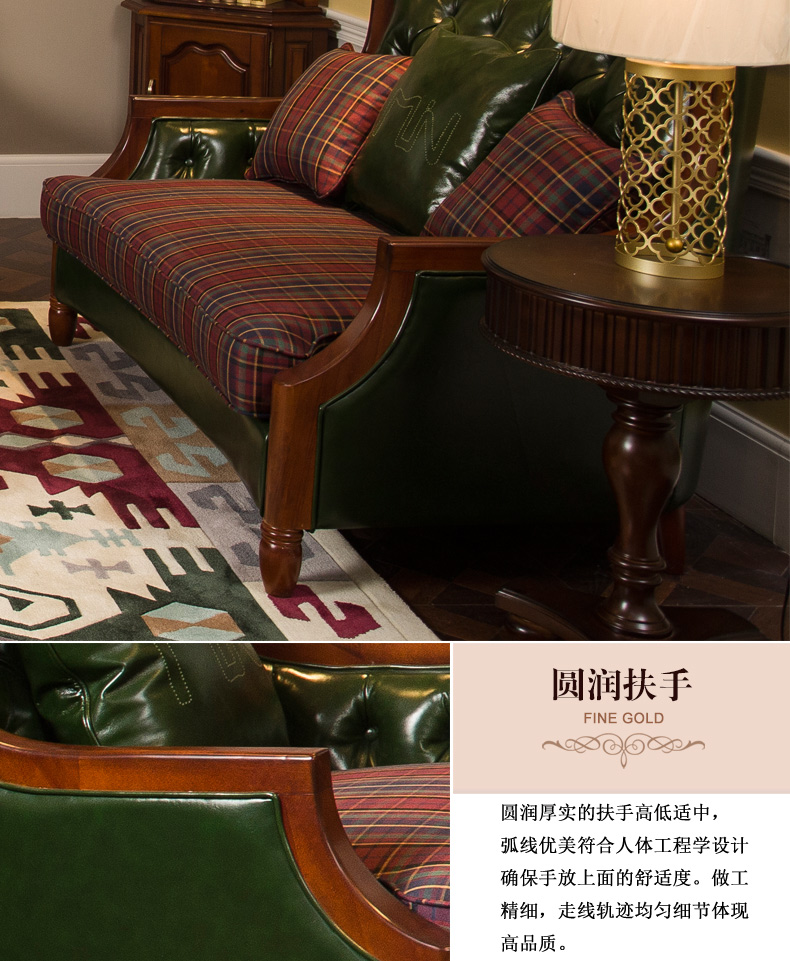 康乐 美式乡村布+皮艺沙发小户型客厅可拆洗简约三人沙发组合KL9038