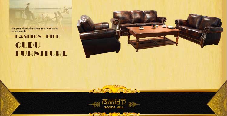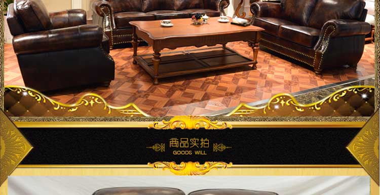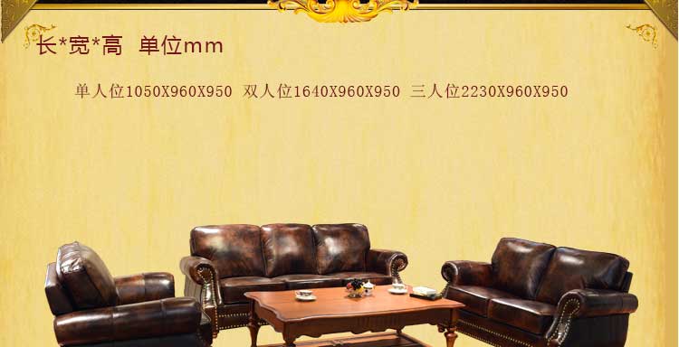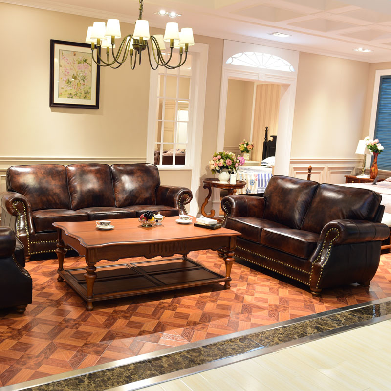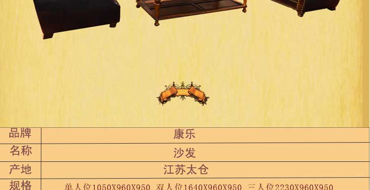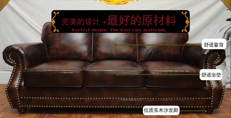 康乐 美式皮艺沙发组合乡村客厅小户型复古沙发KL9037