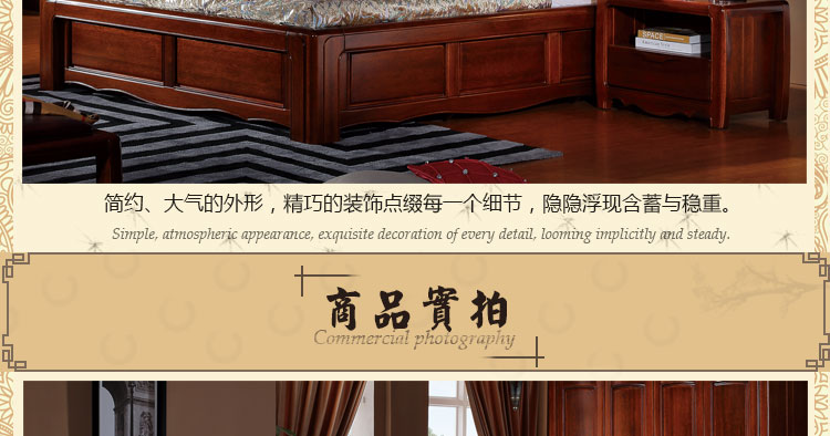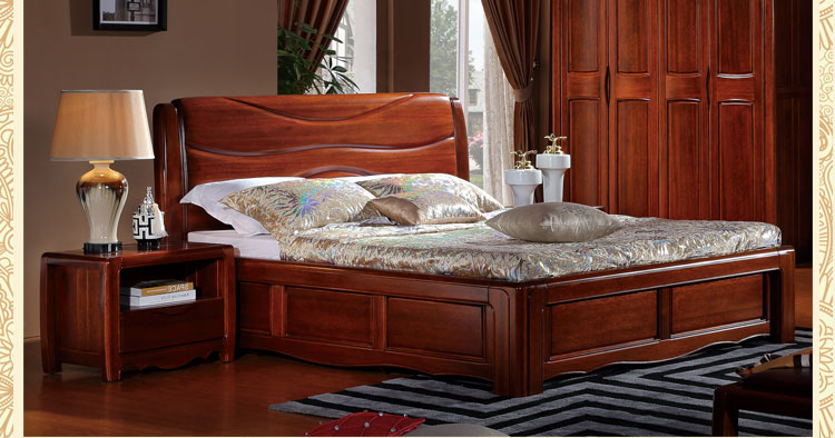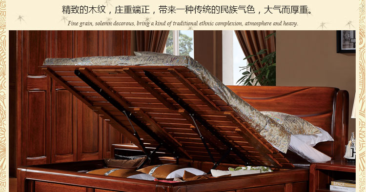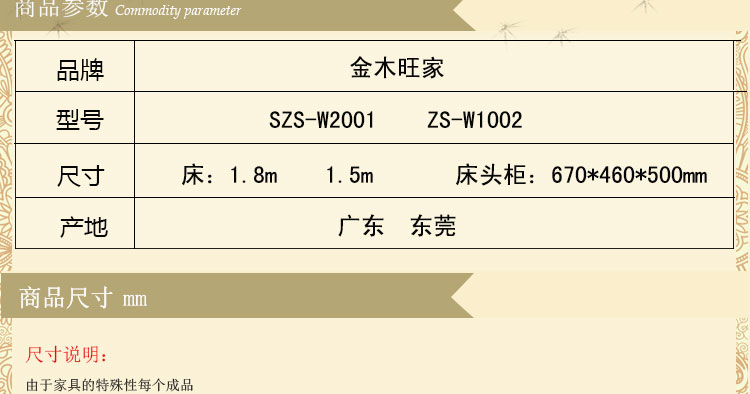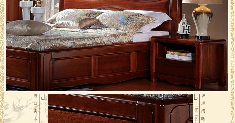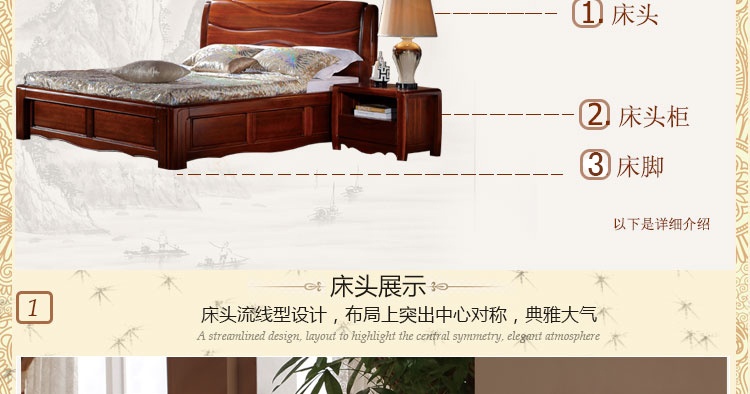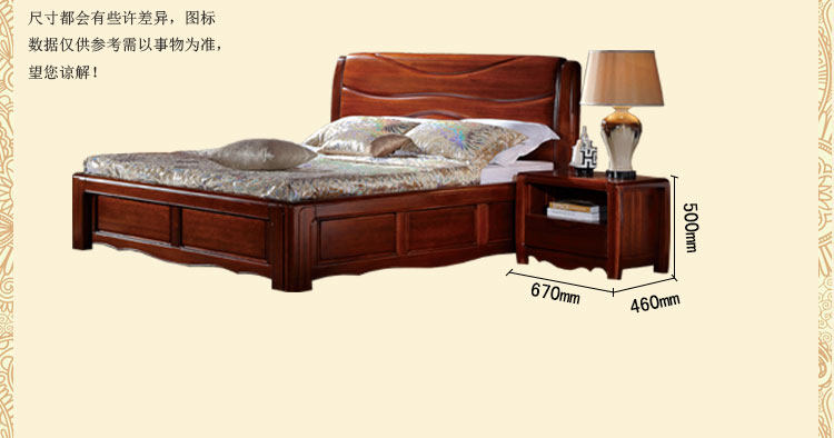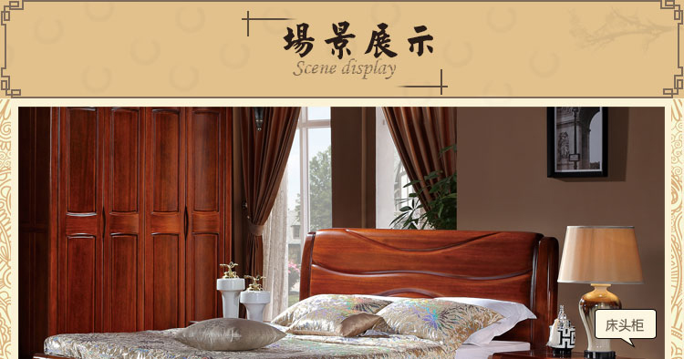 金木旺家 新中式床高箱床实木床双人床1.8 1.5米卧室组合床大婚床 ZS-W2001 床头柜Z