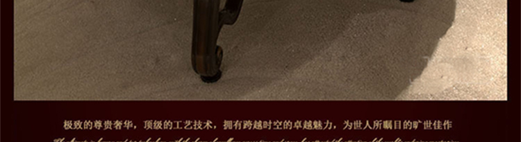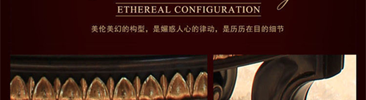 家具十分推崇优雅、高贵和浪漫,它是一种基于对理想情景的考虑,追求建筑的诗意、诗境,力求在气质上给人深度的感染。艺术风格最集中体现在家具的设计方面,要特征在于布局上突出轴线的对称,恢宏的气势,高贵典雅。细节处理上注重雕花、线条,制作工艺精细考究。
