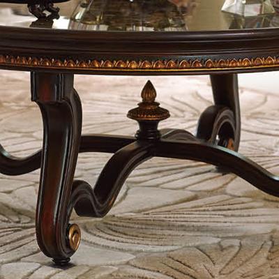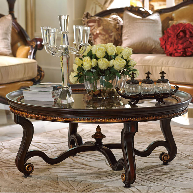 乔驰实木雕刻圆茶几 法式宫廷古典风格艺术樱桃金箔圆茶几1J16S