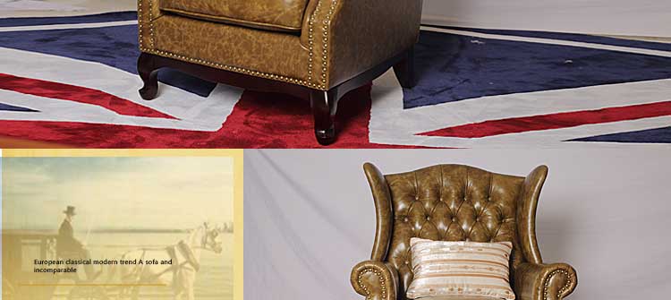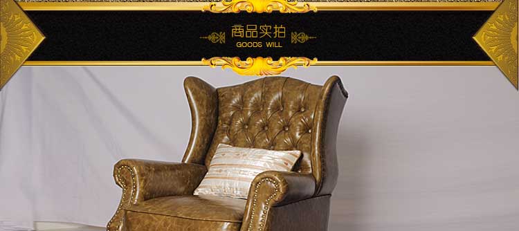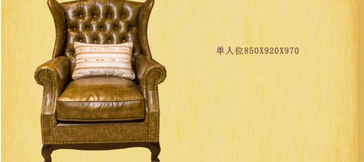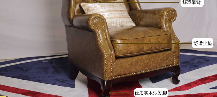 康乐 厂家直销真皮沙发客厅书房休闲美式单人沙发KL9024