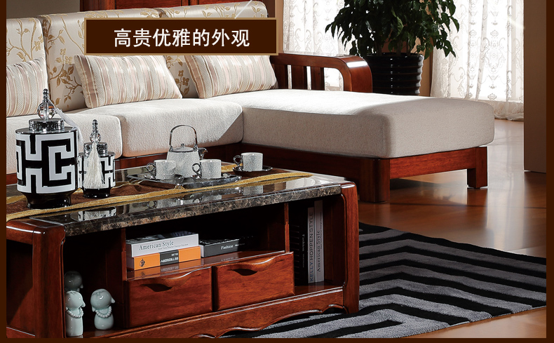 金木旺家 全实木沙发中式沙发中式真皮沙发组合客厅特价实木家具 ZS-W1012