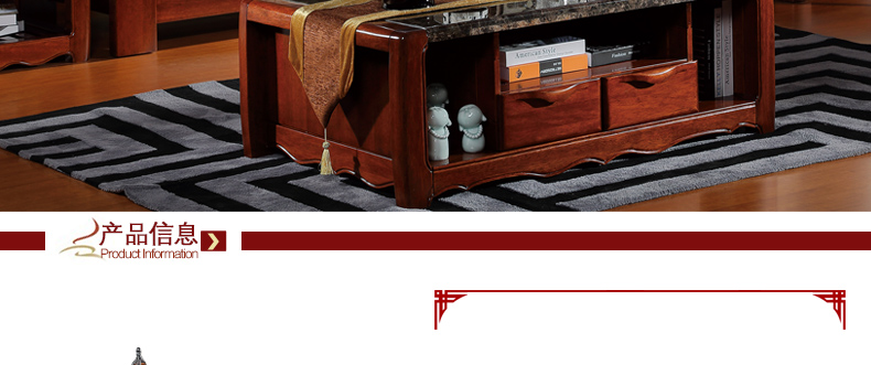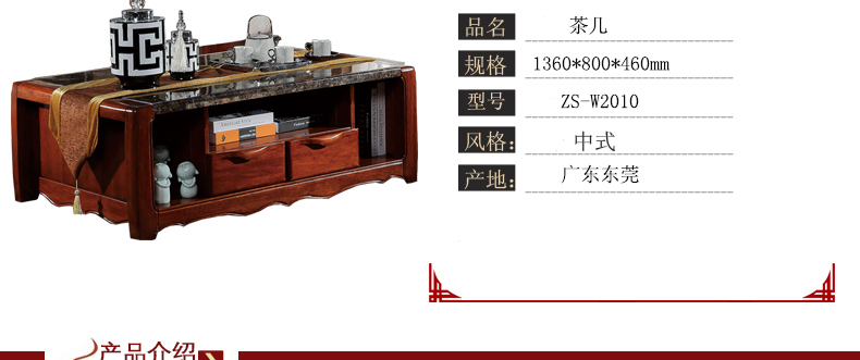 金木旺家 中式实木茶几中式乡村仿古家具客厅带抽屉功夫茶桌 ZS-W2010