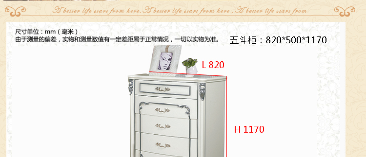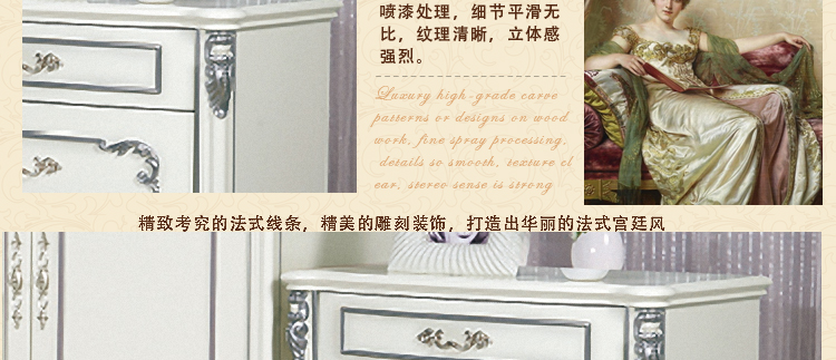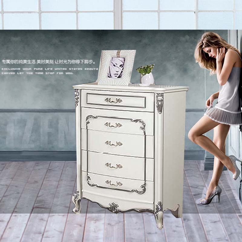 美林印象 欧式精美雕花象牙白靓丽色彩五斗柜 f502