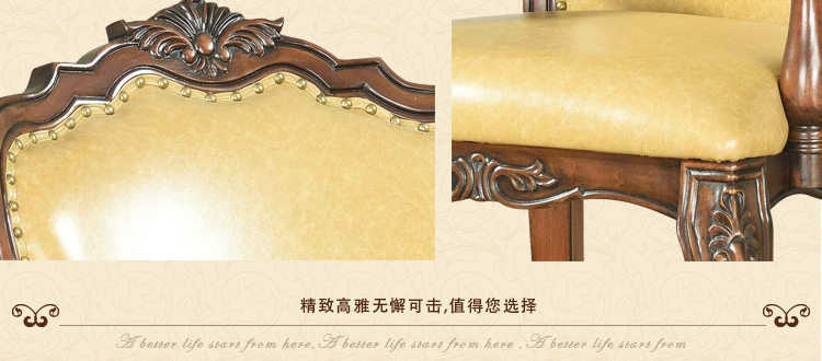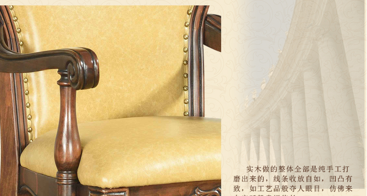 曲富美式实木书椅 书房办公椅子真皮休闲电脑椅美式餐椅M9301