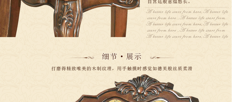 美式古老工艺技法,精雕细琢,完美极致。传达出美式风格的实木家具。木板采用的都是100%实木,防潮防腐防蛀超环保。木艺家具浑厚沉实、明朗高尚的独特韵味及风格。让您的家独具一格!