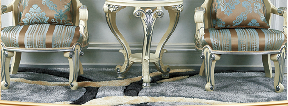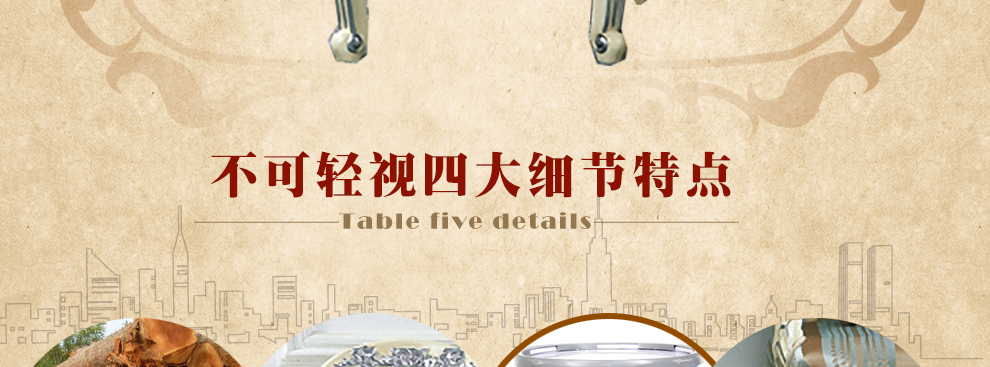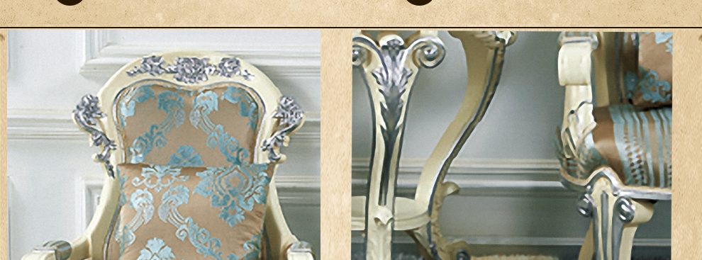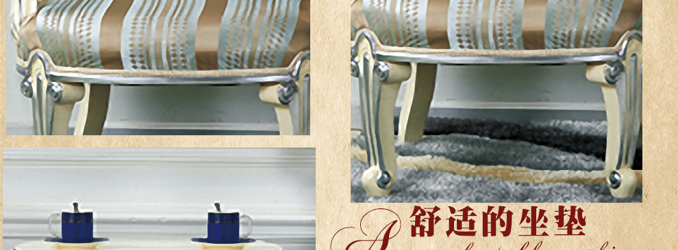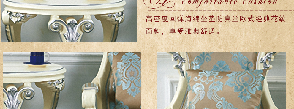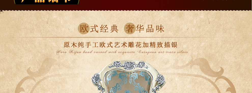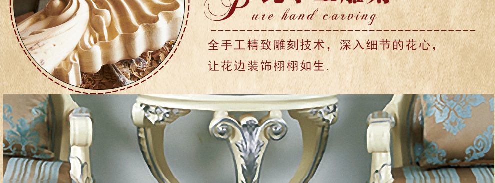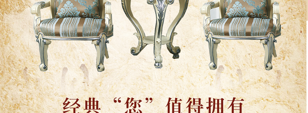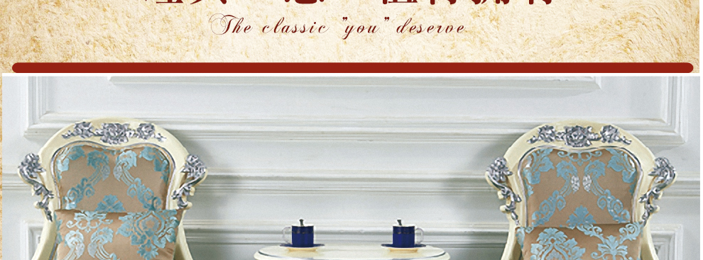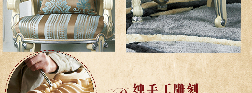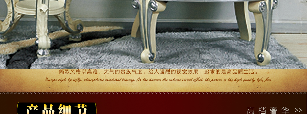 欧式新古典风格,手工精细的裁切雕刻、镶嵌细工,线条流畅,色彩富丽,艺术感强,给人的整体感觉是华贵优雅,十分庄重。