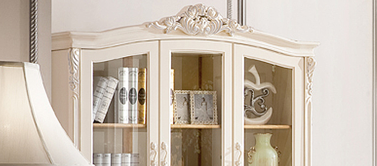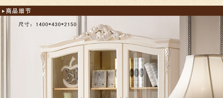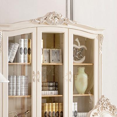 右岸嘉园欧式书柜书橱三门欧式书柜书架组合玻璃储物柜书房家具601