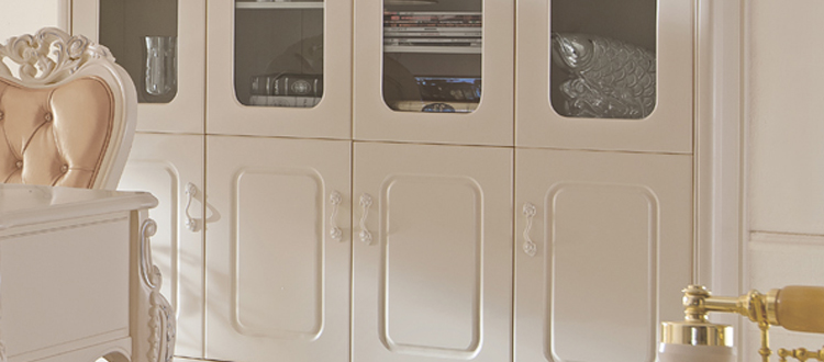 右岸嘉园欧式四门书柜书架组合格子柜带门书橱书柜书桌书房书柜602