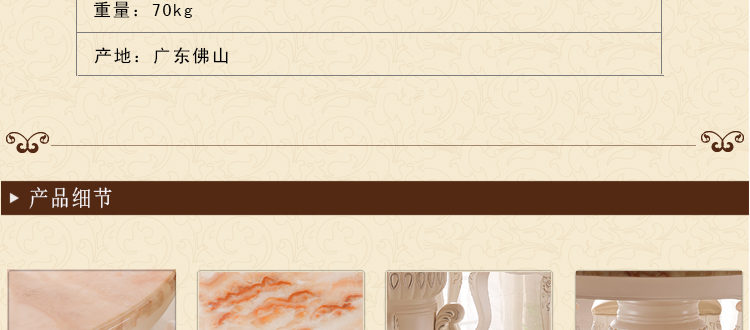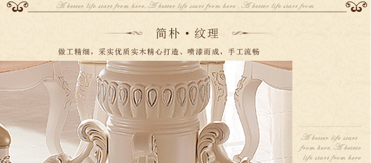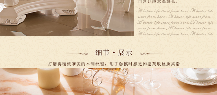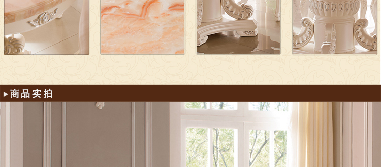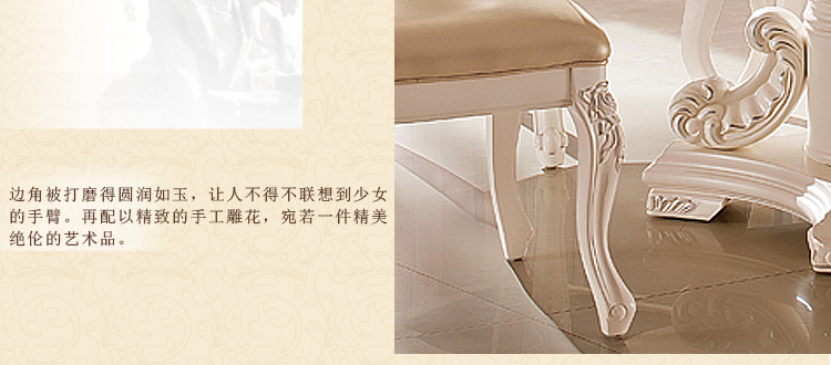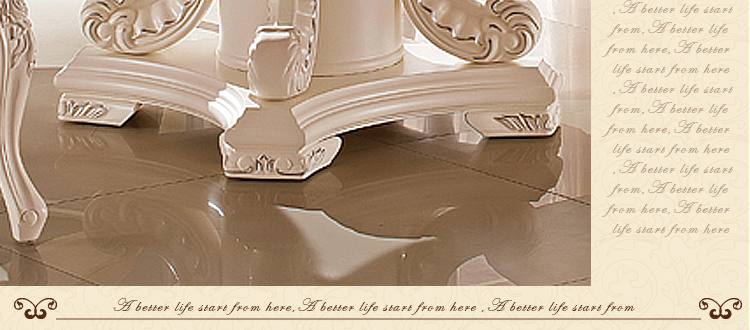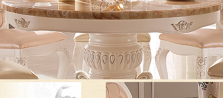 款式很大气的欧式餐桌,用料相当的好的,感觉很结实的,整体做工也是很棒的,细节助理的很不错的。价格也划算。