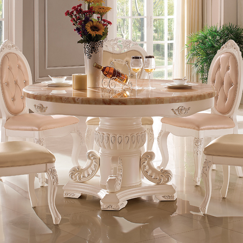 右岸嘉园欧式餐桌欧式大理石实木圆桌实木田园饭桌简约餐厅圆台603