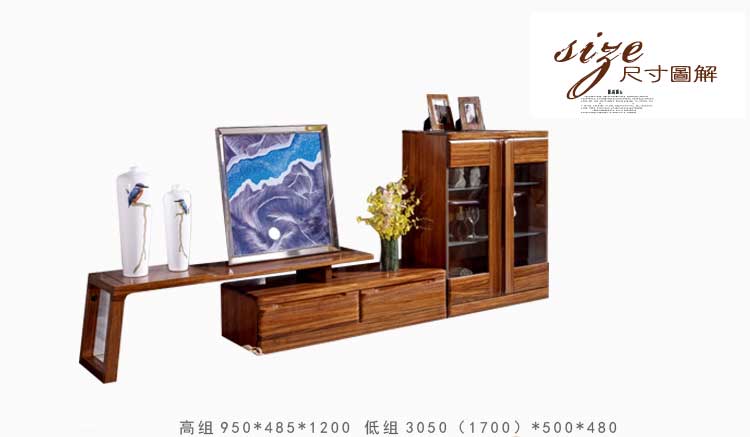 乌金一号 客厅柜现代实木电视柜储物柜客厅柜高组低组组合柜WJ602#客厅柜