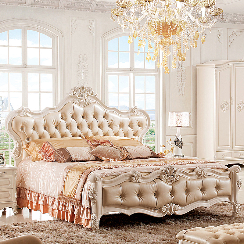 右岸嘉园欧式古典雕花实木家具床 经典时尚双人床卧室婚床616床