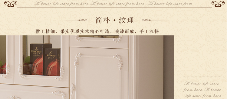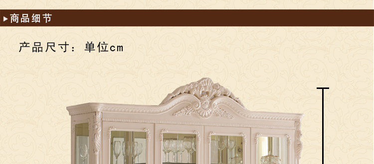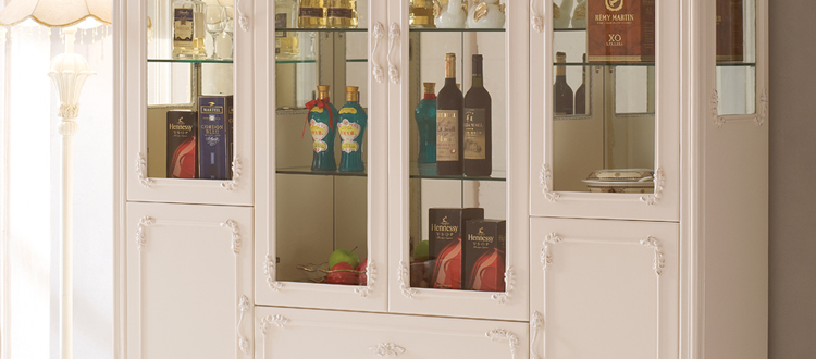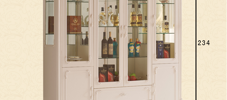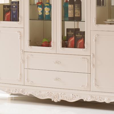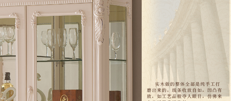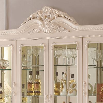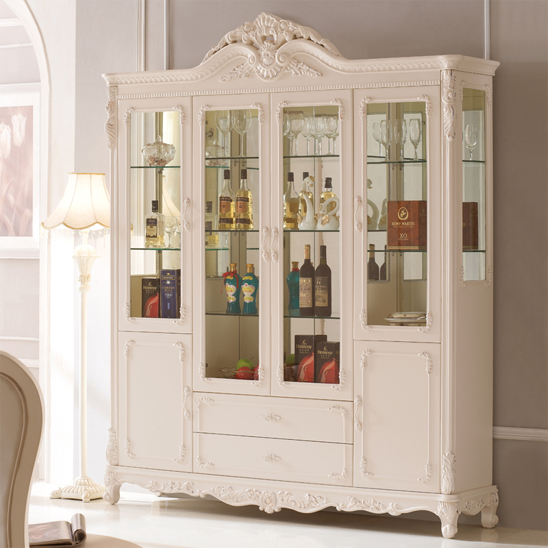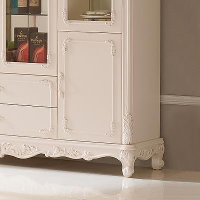 右岸嘉园欧式雕花酒柜白色四门田园酒柜欧式酒柜玻璃酒柜装饰柜储物柜801