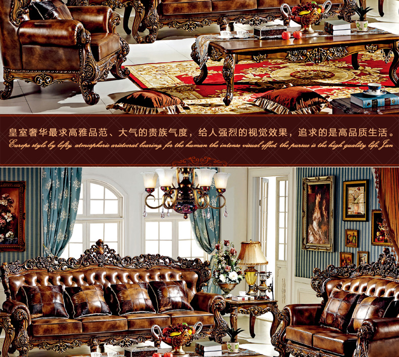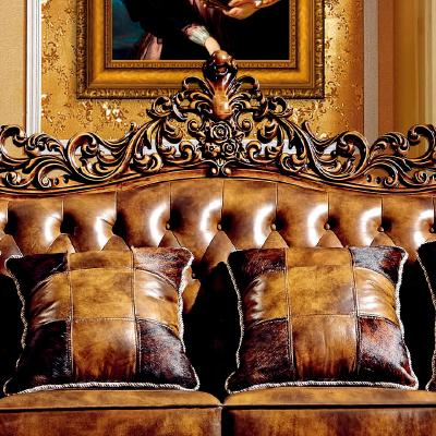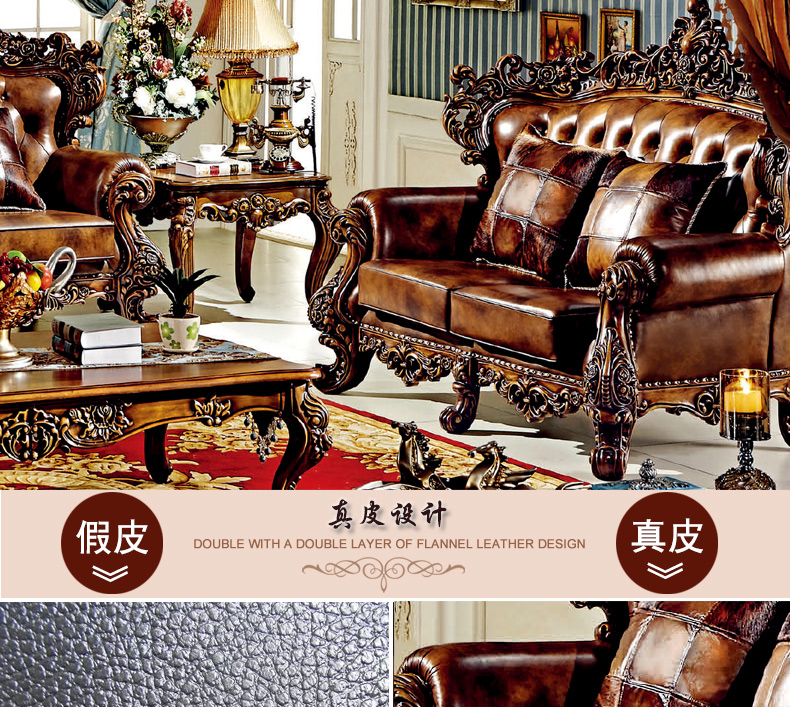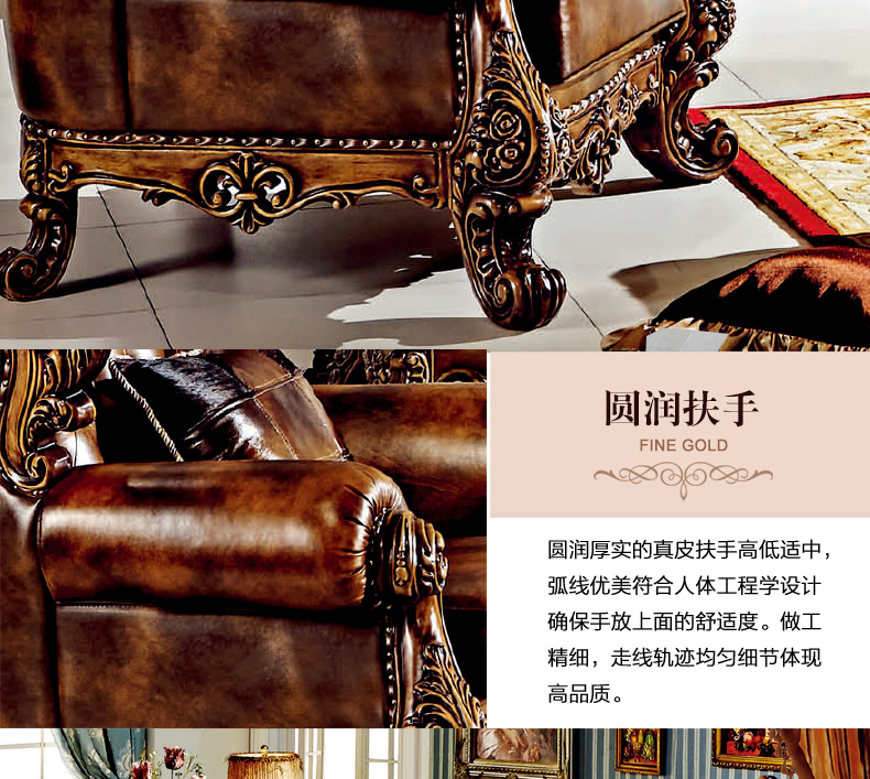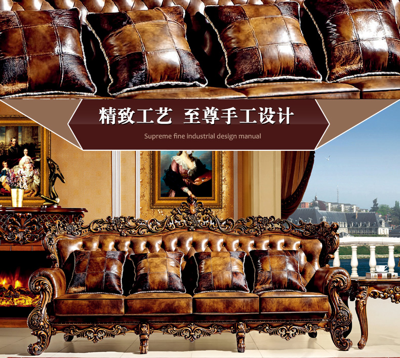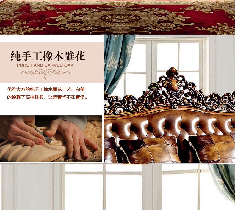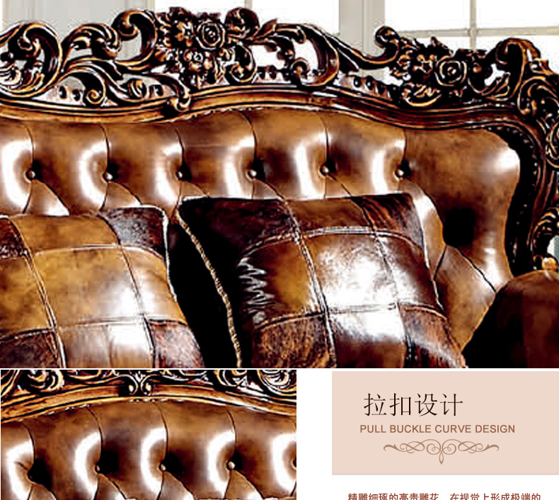 欧式真皮沙发高档实木雕花皮艺家具大小户型头层牛皮客厅123组合 9236