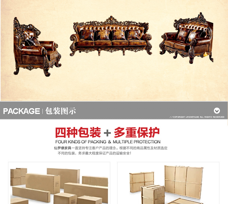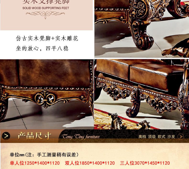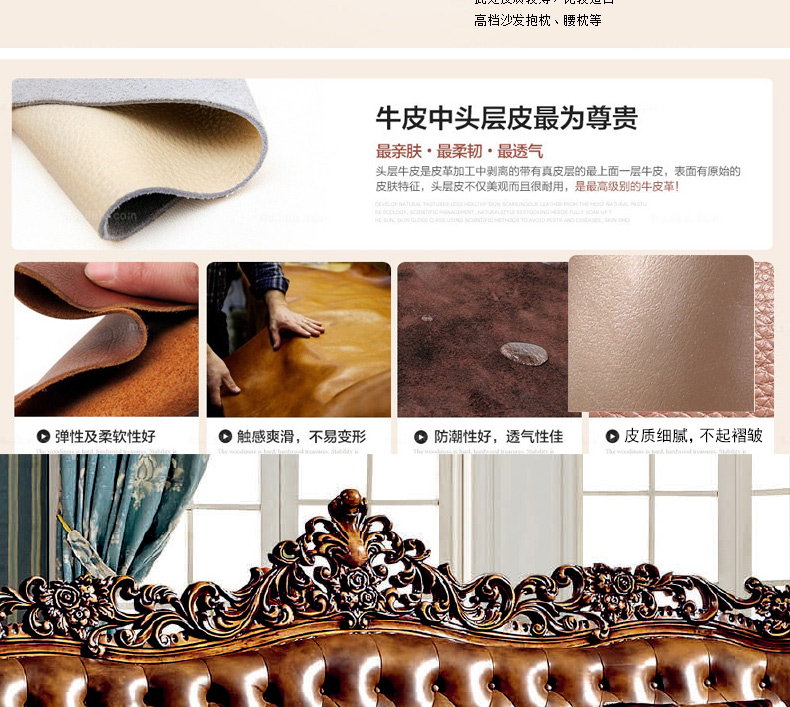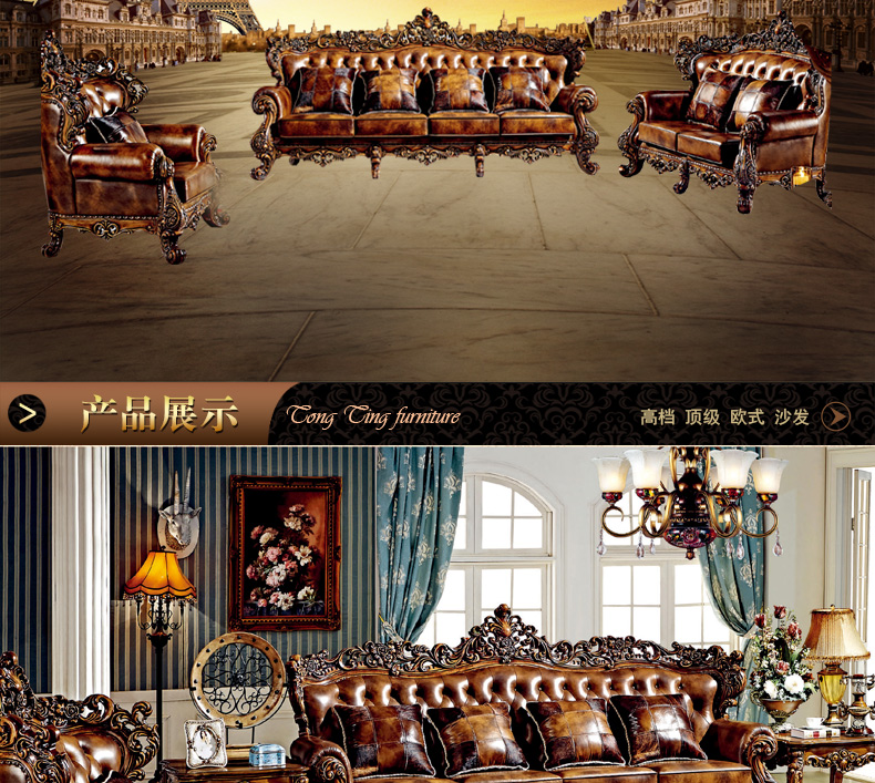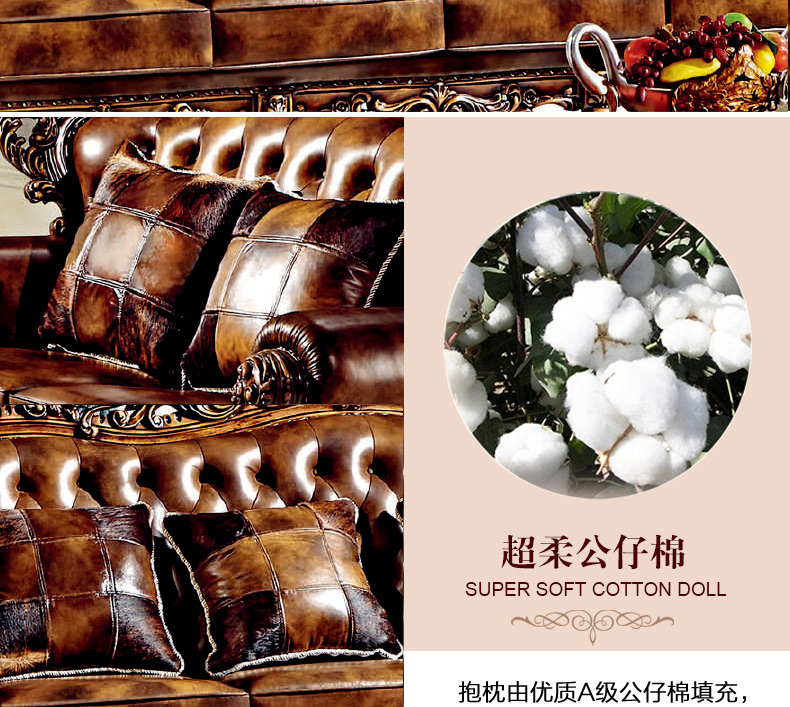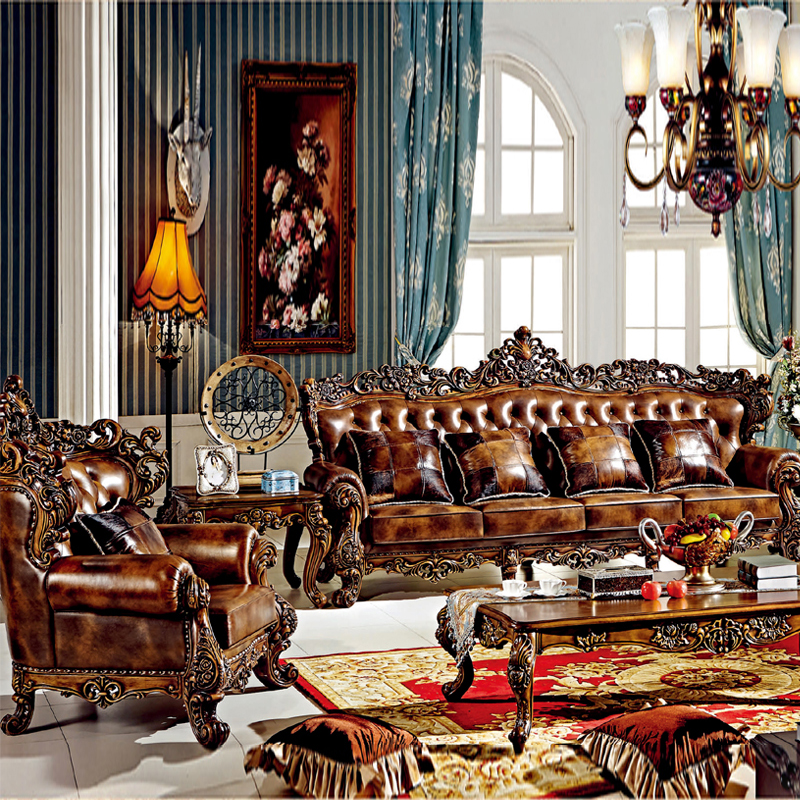 欧式真皮沙发高档实木雕花皮艺家具大小户型头层牛皮客厅123组合 9236