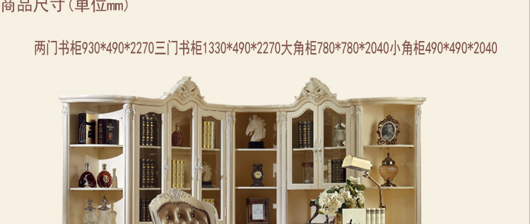 大旗 欧式书柜 欧式三门书柜新古典书橱自由组合书架储物柜子 DA820